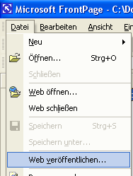 Dieser Vorgang heisst bei FrontPage "veröffentlichen" und wird im Datei-Menü ausgelöst (Siehe Abbildung rechts).